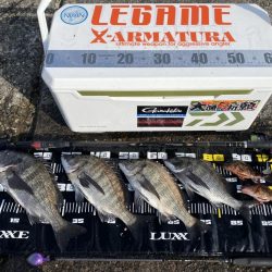 久しぶりの日の出渡船5番。5時20分出船。雨上がりで風も結構強く迎えの便は11時。9時前まで坊主でしたが 10時までに3匹釣れて良かったです。乗っ込みチヌ3匹釣...